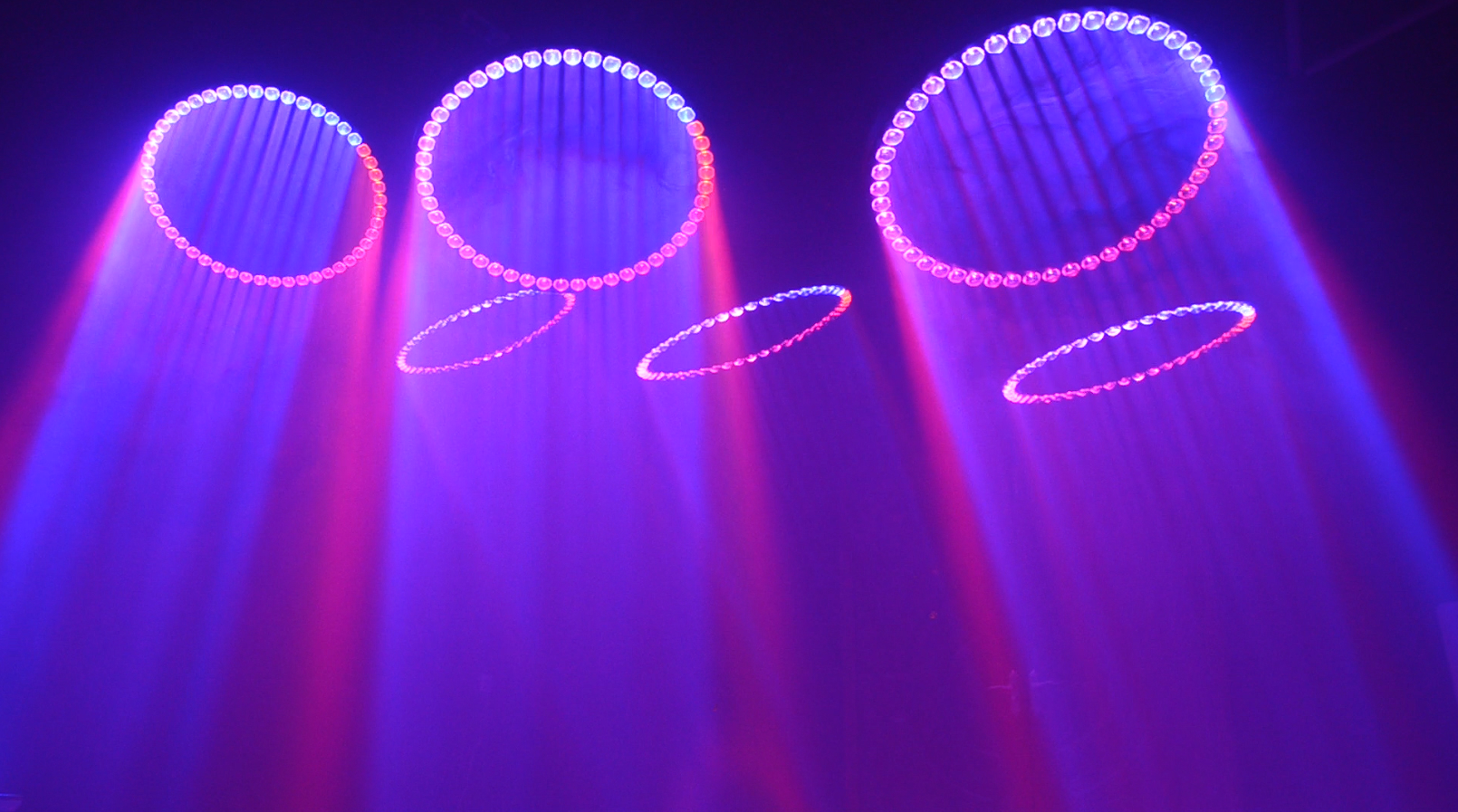 Ring beam kinetic lights look great in both real life and video. They create iconic images: floating rings, descending circles, glowing portals.