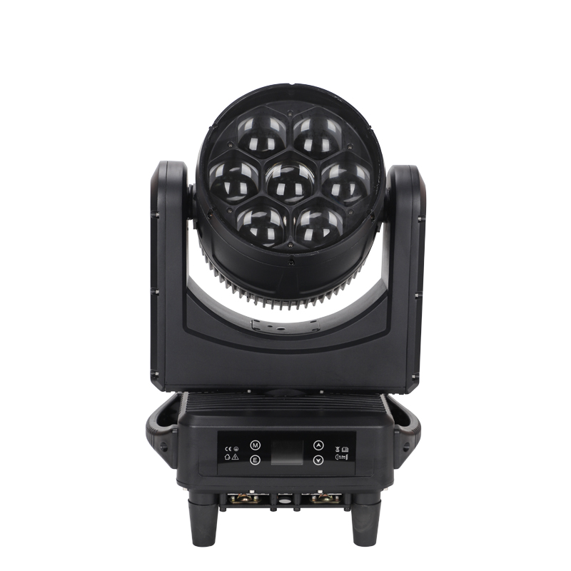 The compact design of the 7x60W Bee Eye Rotating Zoom LED Moving Head Light allows dense fixture placement for high-resolution lighting environments.