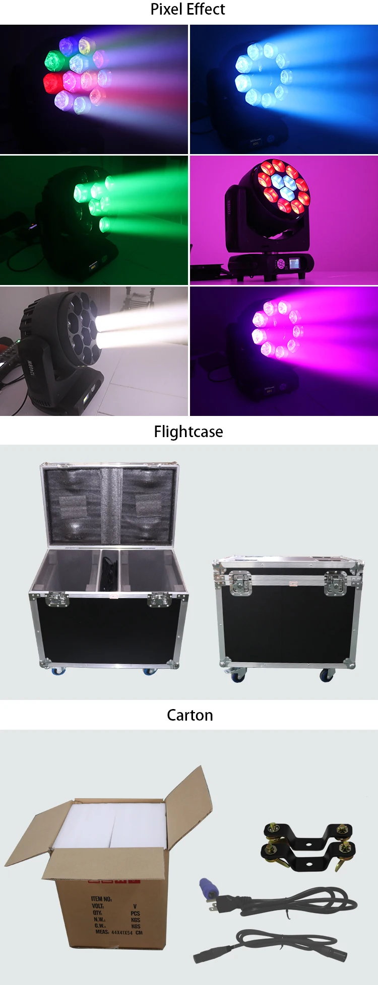 More details of our  Stage light  12pcs 40w RGBW 4in1 LED Wash Moving Head Light  With Zoom Pixel control  as below: