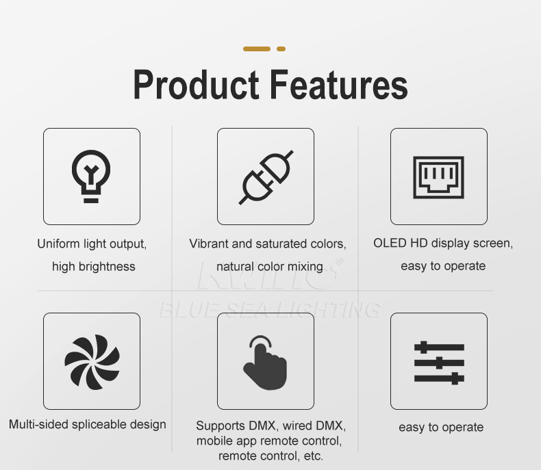 Blue Sea Lighting is an enterprise with rich experience in the integration of industry and trade in stage lighting and stage special effects related equipment. Its products include moving head lights, par lights, wall washer lights, logo gobo projector lights, power distributor, stage effects such as electronic fireworks machines, snow machines, smoke bubble machines, and related accessories such as light clamps.