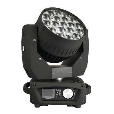 The 19x15W RGBW 4in1 LED Zoom Wash Moving Head Light provides adjustable zoom and rich color wash—ideal for sweeping across seating zones and energizing fans.