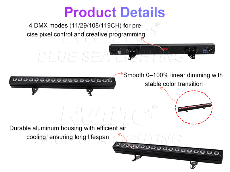Why Choose Bluesea Lighting's Outdoor 18pcs 18W RGBWA UV 6in1 Pixel Led Wall Washer?