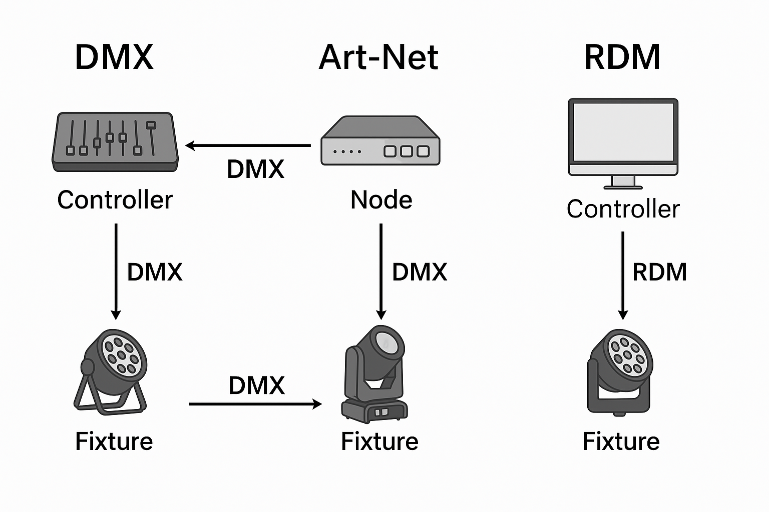 Modern stage lighting relies on far more than power and brightness—it demands precision, coordination, and adaptability. This is where lighting control protocols come into play. Among the most widely adopted technologies in professional lighting systems are DMX, Art-Net, and RDM. Together, these three protocols enable lighting designers and technicians to build intelligent networks of fixtures that are flexible, efficient, and remotely manageable.